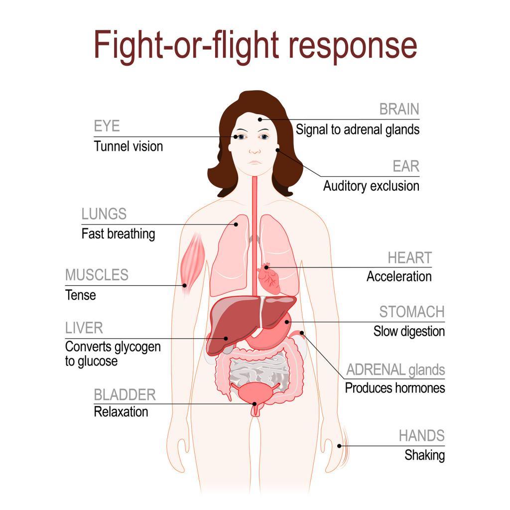 A perceived stress causes an activation of the stress response or the “fight or flight response”. This is a physiological response and triggers the release of stress hormones such as cortisol and adrenaline resulting in elevations in heart rate, blood pressure, sweating and breathing rate.