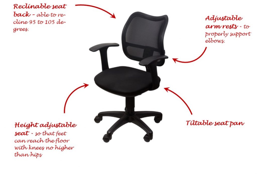 Although sitting upright is better than sitting slumped, there is no single “perfect” sitting posture. Sitting rigidly with “good” posture will still lead to problems over time so it’s therefore important to stay as mobile as possible. With this in mind, along with taking regular breaks, ensure you also regularly adjust the position of the chair to help vary the load on the spine.