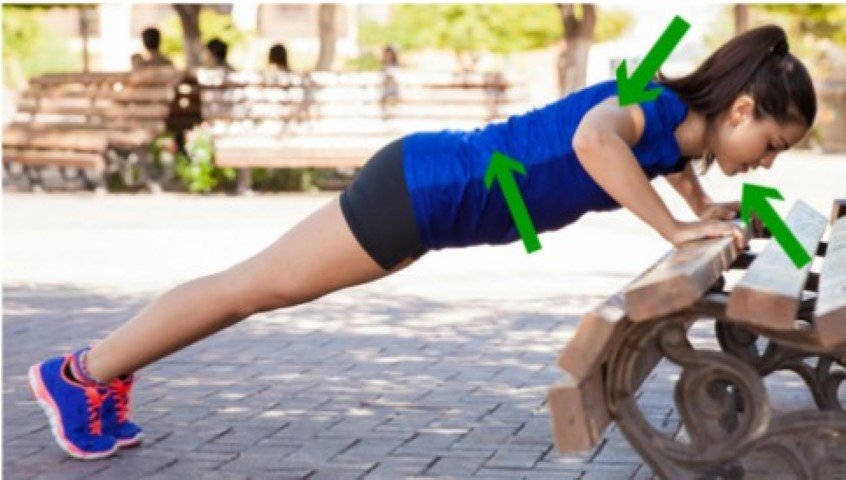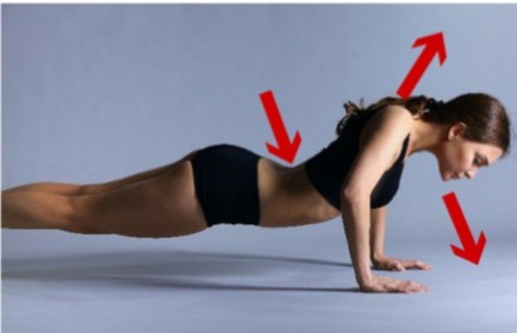 Below you can see a ‘poor’ pattern of trunk and upper quarter stabilisation – sagging of the lower back, jutting of the chin and shrugging of shoulders (red arrows). This pattern will lead to increased strain of the superficial muscles predisposing to injury, including tennis elbow.