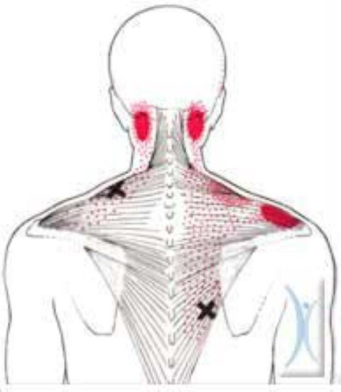 Much like joints, irritated muscles can also cause local and referred pains. Pictured is the upper trapezius muscle, a common culprit in posturally related neck pain and headache.