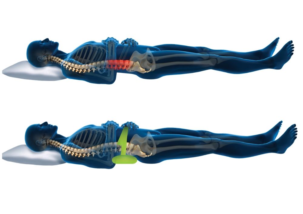 Sciatica due to disc herniation is often associated with severe pain at night pain. Supporting the lower back in a well alligned position can help.