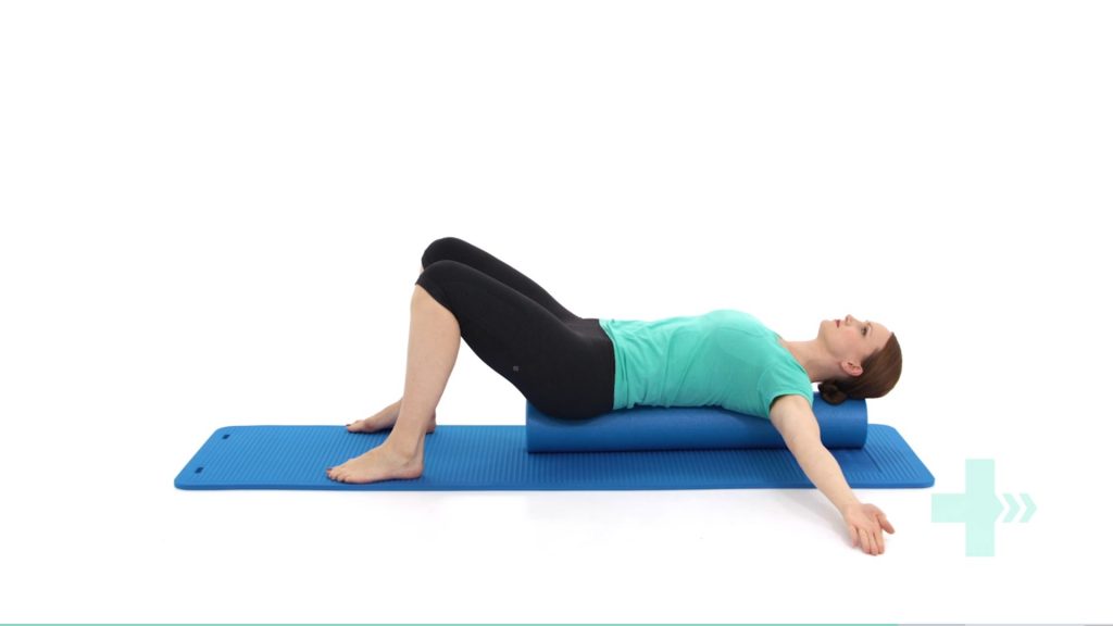 Lie on your back on a foam roll with your hands at your side and palms facing upwards.