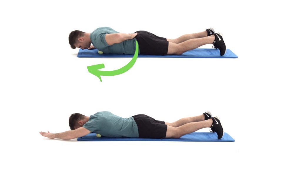 Place a massage ball underneath the muscle at the front of your chest, near your shoulder.